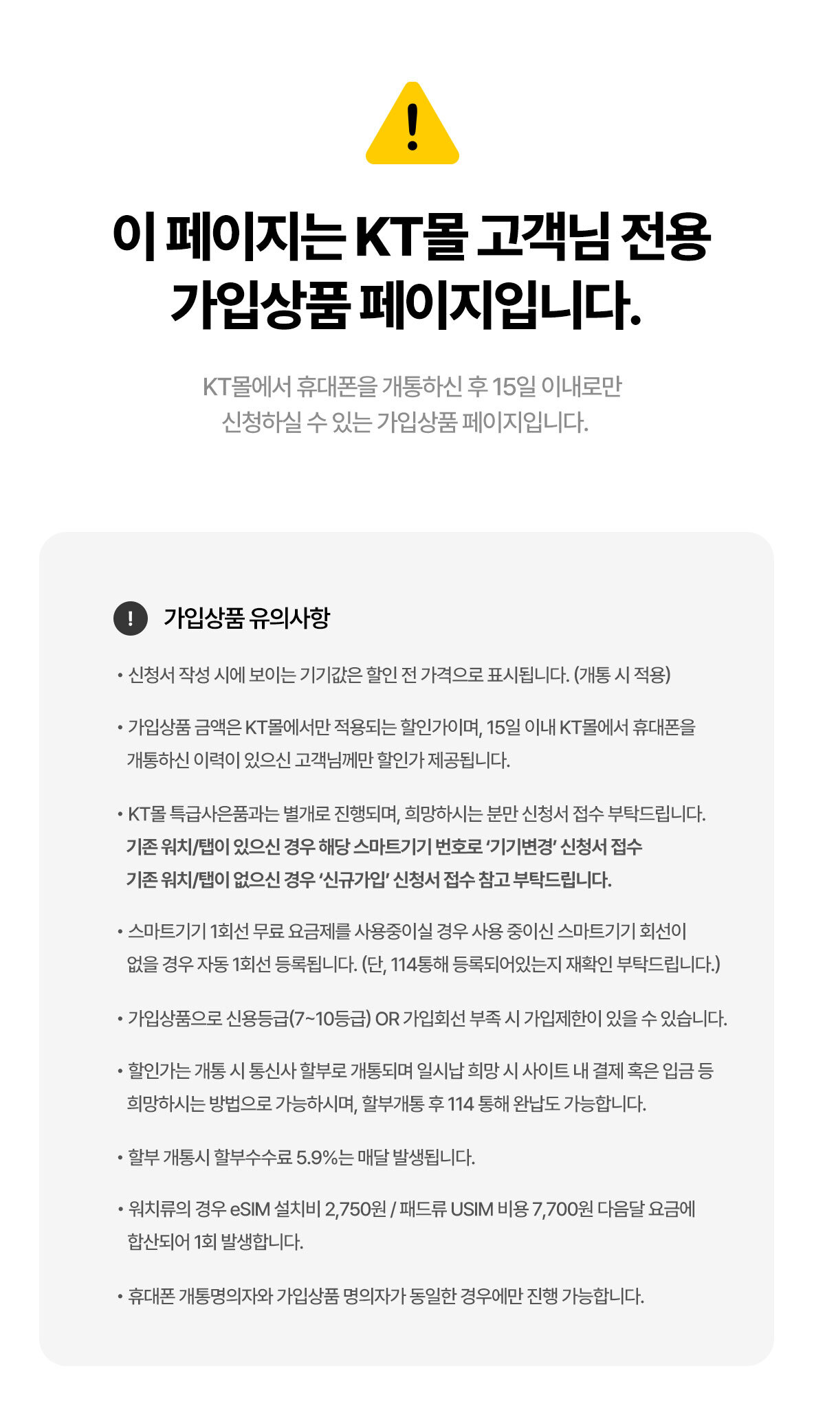 ③ 단말기 구매는 “KT할부” 방식으로만 가능합니다. (카드납부는 불가합니다.)