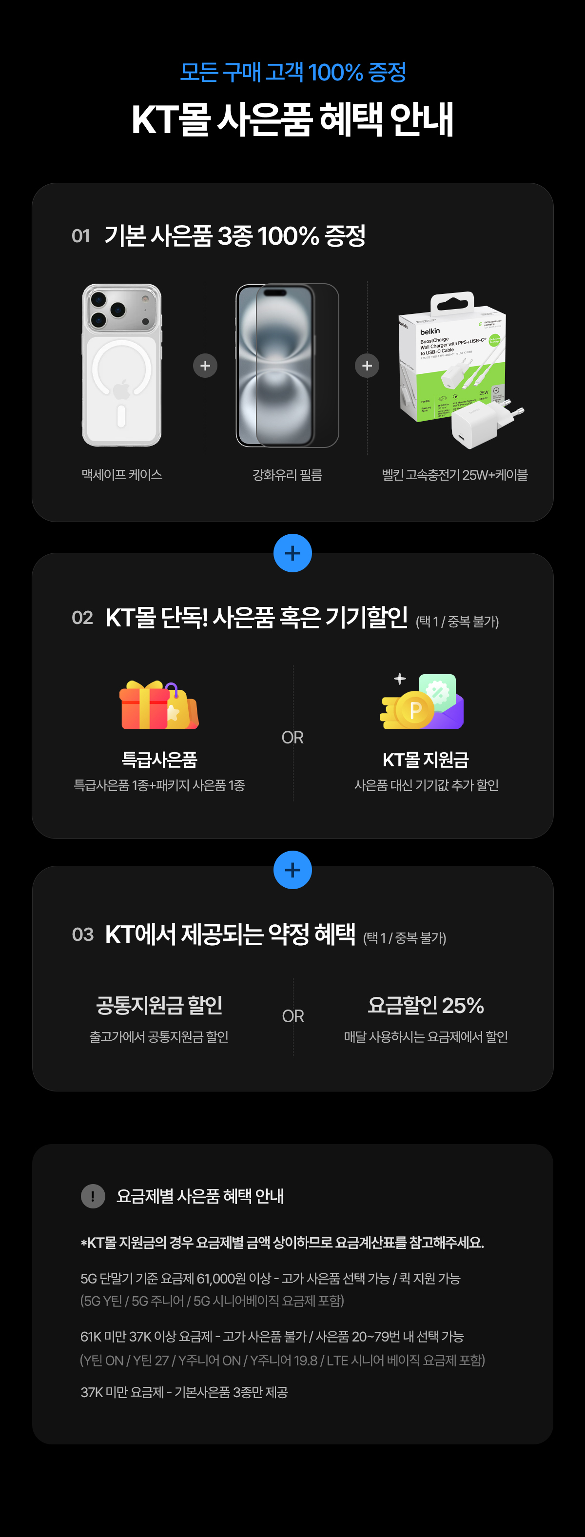 사은품 혜택 선택사은품 혹은 KT몰 지원금 중 택1