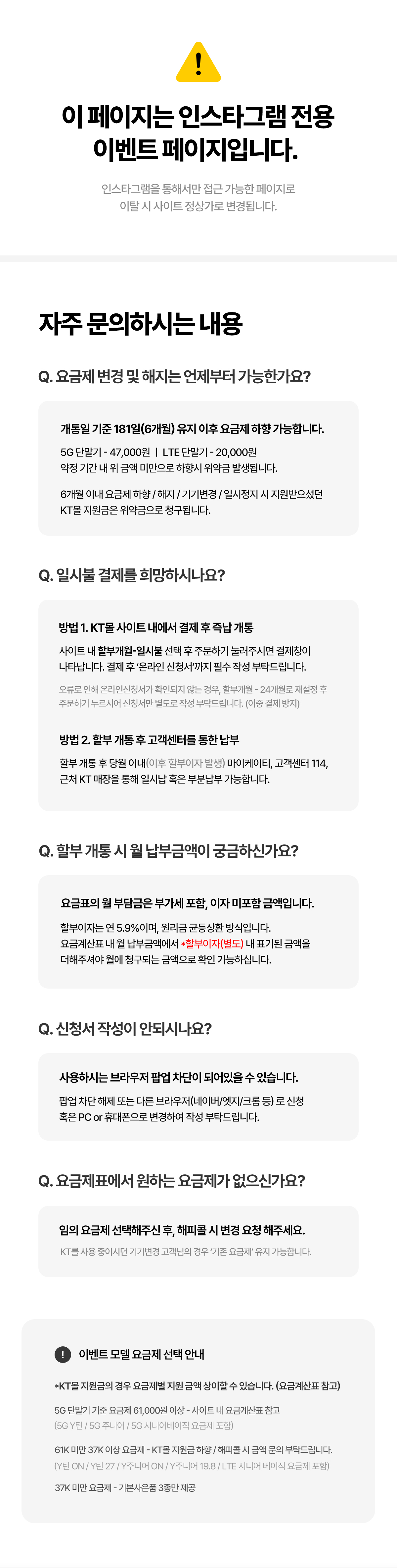 ③ 단말기 구매는 “KT할부” 방식으로만 가능합니다. (카드납부는 불가합니다.)
