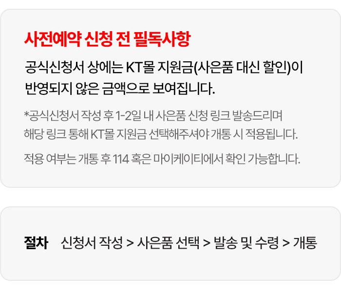 사은품 혜택 선택사은품 혹은 KT몰 지원금 중 택1
