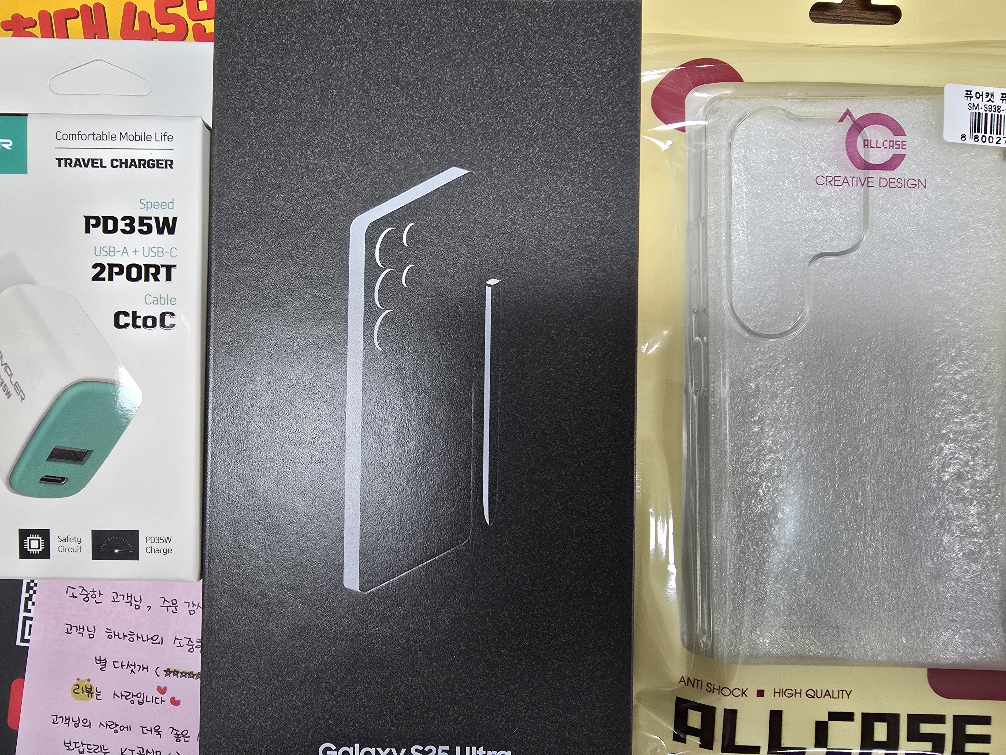 사은품으로 주신 충전기랑 케이스, 필름 덕분에 개봉하고 바로 사용했어요